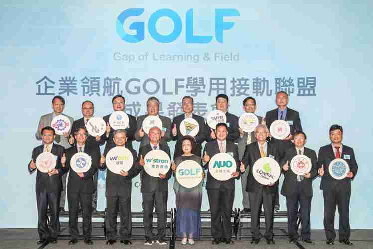 GOLF学用接轨联盟集结企业和学校的力量,,,,打造「学用合一、、产学接轨」的创新合作平台 (前排左起:淡江大学副校长何启东、、、、元智大学校长林启瑞、、、、纬育执行长许延岳、、、纬创总经理暨执行长黄柏漙、、教育部政务次长范巽绿、、、、万利董事长暨执行长彭双浪、、、仁宝总经理暨执行长翁宗斌、、、、大同大学校长何明果、、、、圣约翰科大校长艾和昌;后排左起:明新科大校长林启瑞、、、龙华科大校长葛自祥、、、、台湾科大校长廖庆荣、、中兴大学副校长郑政峯、、、中央大学校长周景扬、、、、台北科大副校长任贻均、、中华科大副校长石大明、、明志科大校长刘祖华)