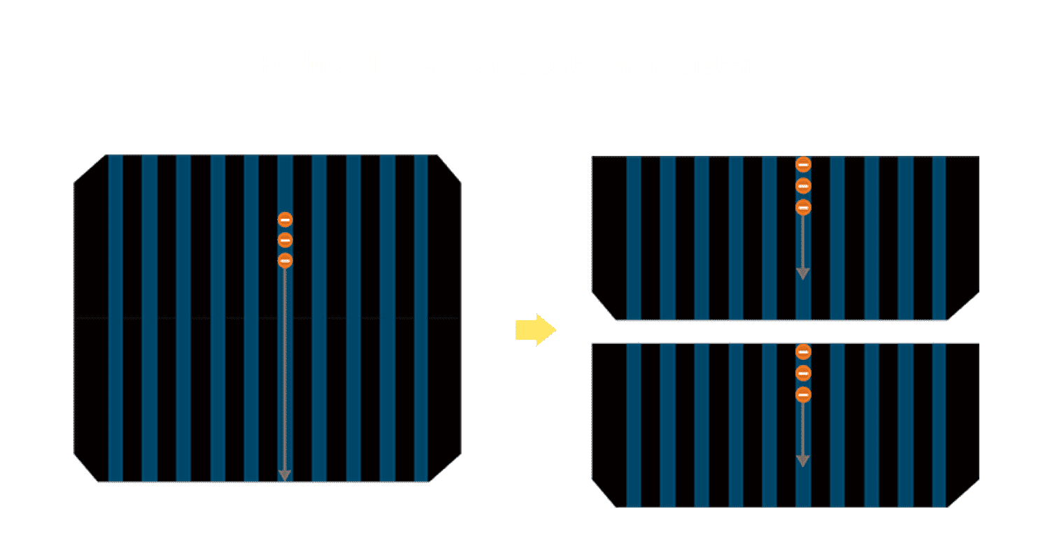 - 多条电极栅结构,,,,可有效降低外力对于电池的影响,,,,限制电池隐裂 (Micro-cracks) 范围,,,,防止电流传输路径 (Current distribution) 之损坏进一步扩大。。